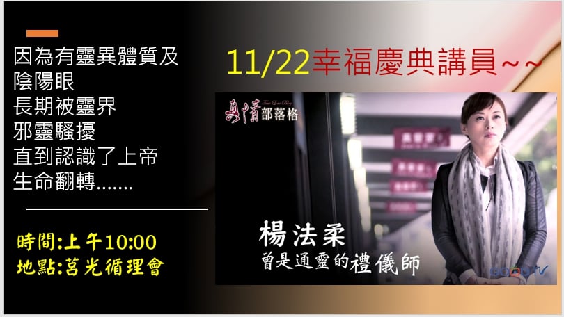 邀請你11/22一定要來聽聽法柔姊妹的分享
